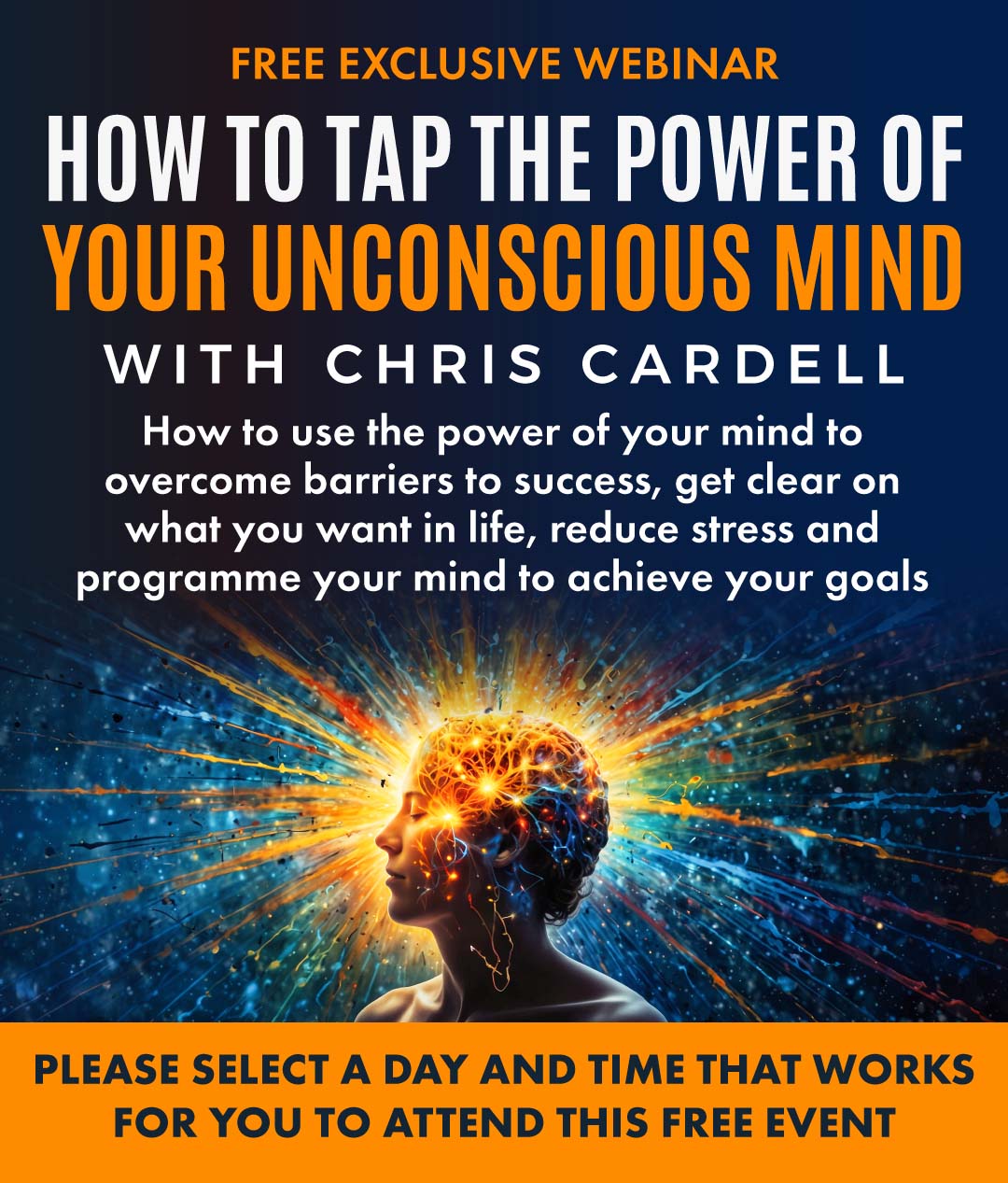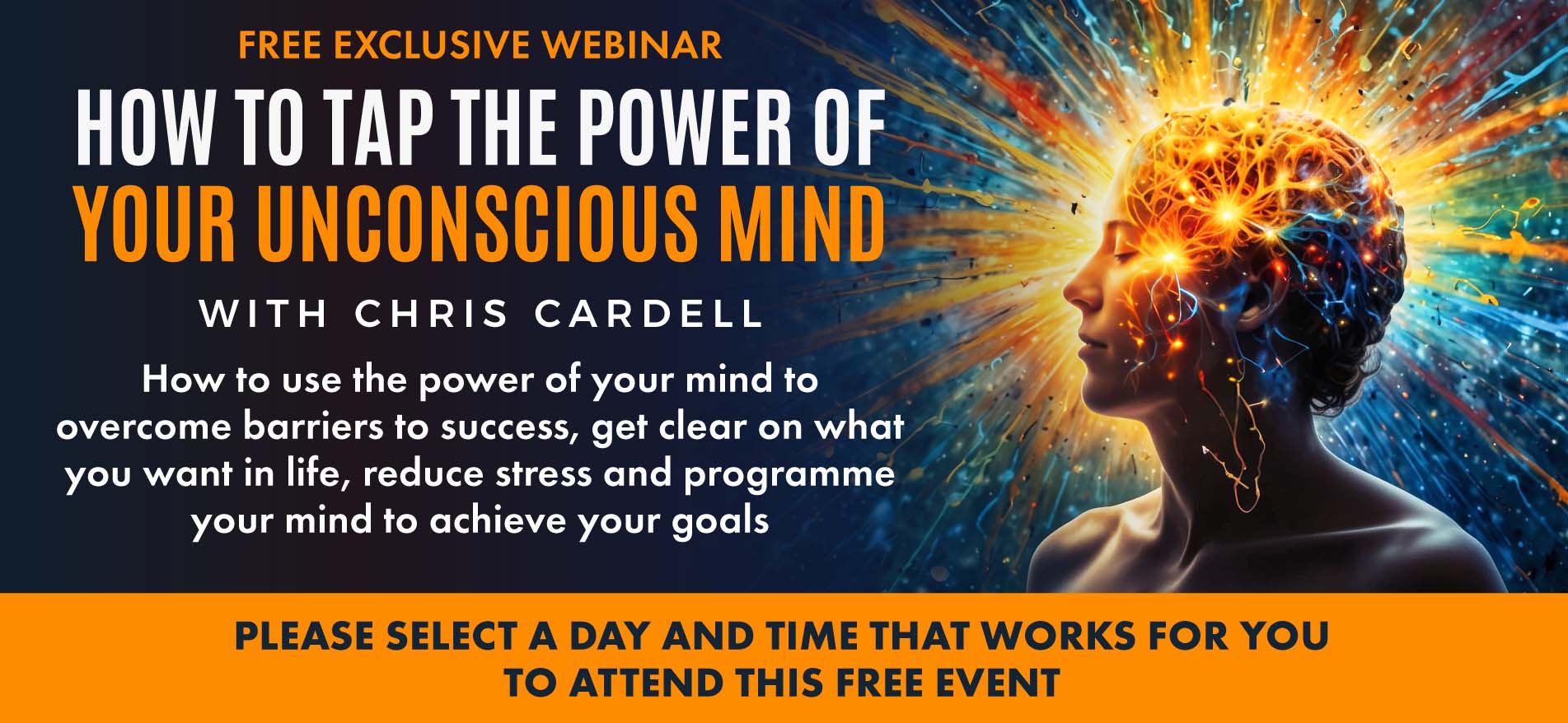 In this exclusive Free online event, with Chris Cardell, a world leader in Advanced Thinking Technologies, you’ll discover how to harness the full power of your Unconscious Mind to create breakthroughs in your life—quickly and effortlessly.