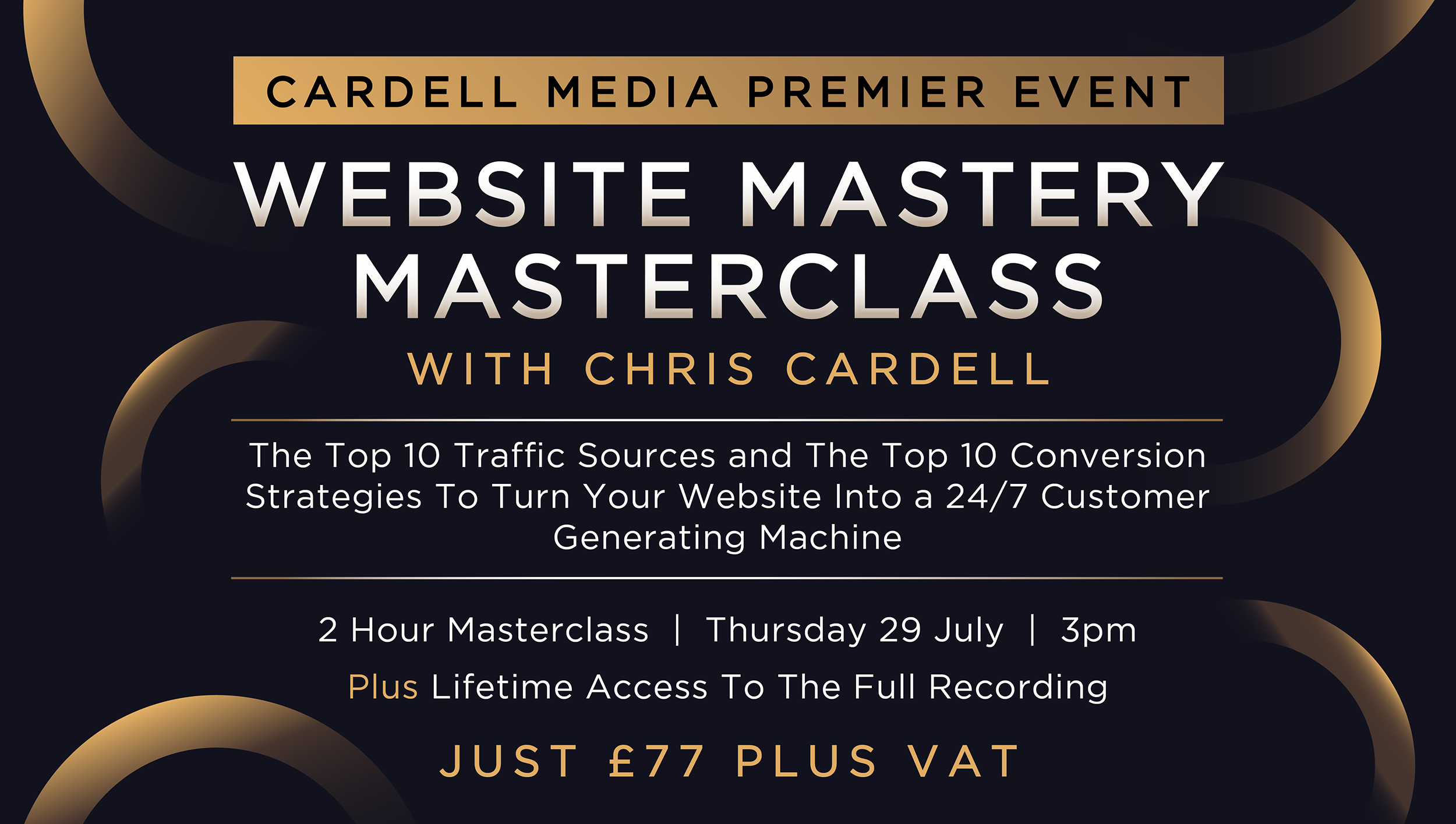 Confirm your place on this page, you will then receive an email with a link to the event. You can watch the 2 hour Masterclass live from any location on any device. You will also receive a recording afterwards of the full event.